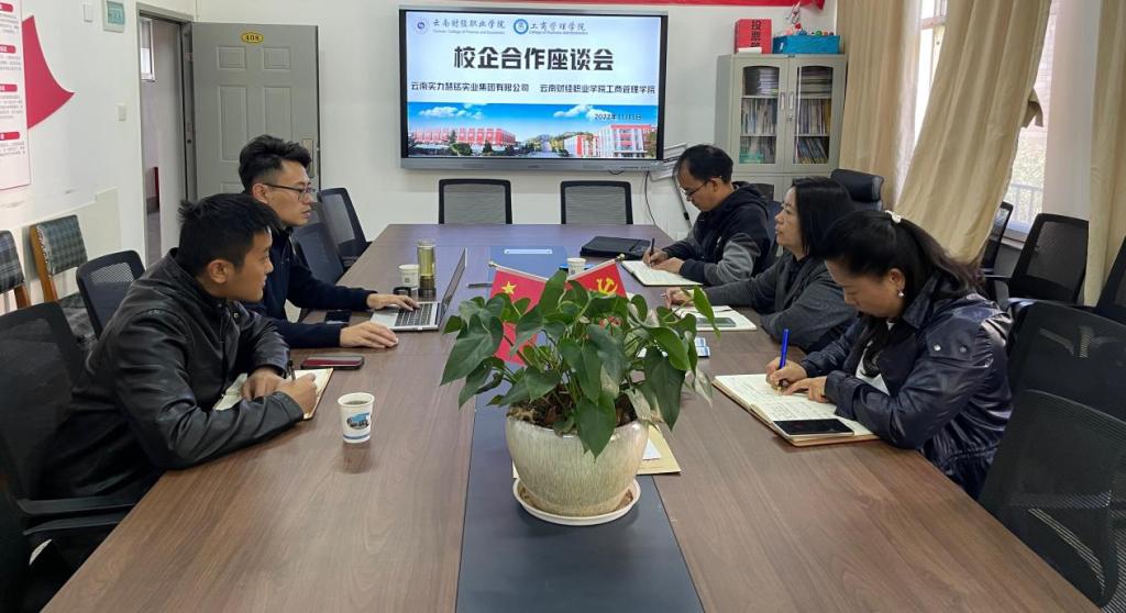 2022年11月1日至4日,工商管理学院与云南实力慧铭实业集团有限公司和东润教育投资管理集团进行了校企合作面对面座谈交流。