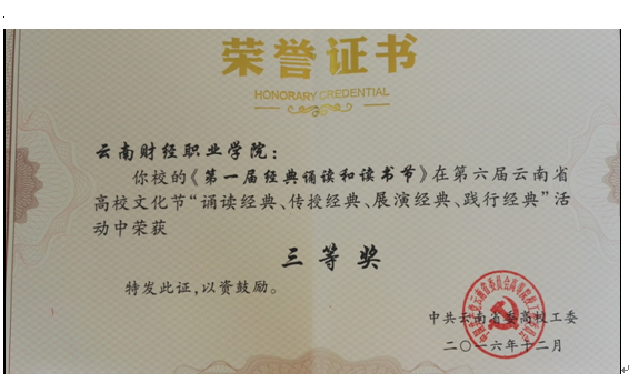 我院参加第六届云南省高校文化节“诵读经典、传授经典、展演经典、践行经典”评选活动荣获三等奖