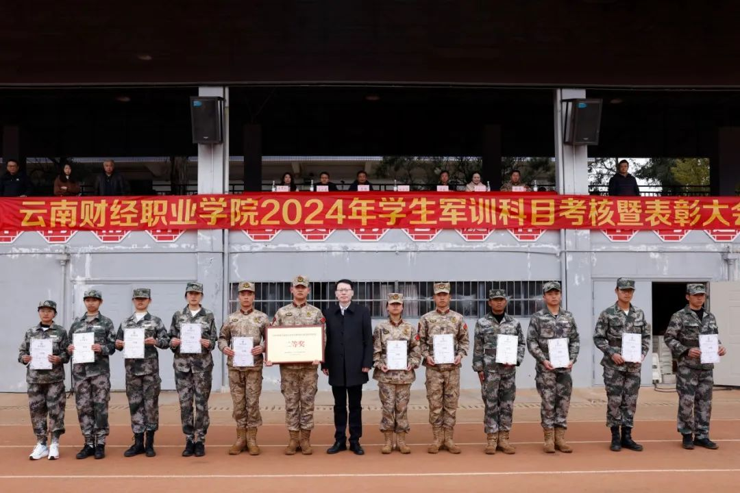 大会通报了2024年云南省大学生军事技能大赛获奖名单,张金甫向我校获奖选手颁发了奖牌和证书,会议还对本次军训中涌现出的“优秀学员”“优秀教官”“先进个人”进行了表彰。