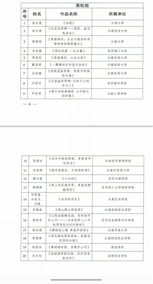 作为云南省国防教育重要品牌活动,“爱我国防”演讲比赛已成功举办多届。我校退役大学生选手曾于2023年荣获该项赛事高校组“优秀奖”。今年我校再次晋级全省总决赛。