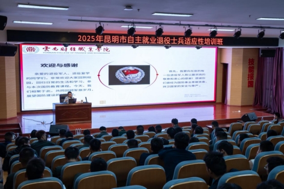 为积极响应《云南省教育厅等六部门关于举办2025年全民终身学习活动周的通知》的文件精神,10月21日,学校主动参与由昆明市退役军人事务局主办的“2025年昆明市自主就业退役士兵适应性培训”活动,安排了职业生涯规划、国防教育2个专题培训,参加此次活动的退役军人有100余人。