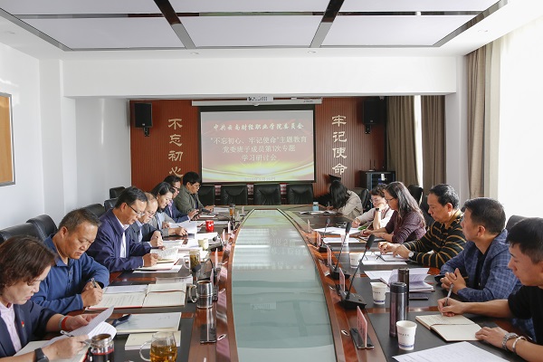 9月29日上午,学校党委在办公楼第一会议室举行“不忘初心、牢记使命”主题教育党委班子成员第1次专题学习研讨会,本次集中学习研讨的专题是“党的政治建设”。以省招生考试院原党委书记杨嘉华同志为组长,省教育厅职业与成人教育处副处长胡正刚同志、云南轻纺职业学院正处级干部段丽芬同志为副组长,云南交通职业技术学院宣传部副部长斯琴同志、云南财经大学组织部党校办公室教务科科长崔海浪同志为组员的高校工委指导组莅临指导,学校党委班子成员参加了学习,专题学习由党委书记李思泽同志主持。