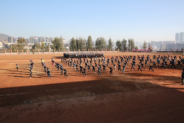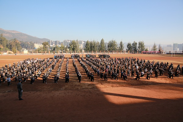 2017年1月15日上午9点,经过十天严格的军事化训练,迎来了十天军训成果的最后检阅。我院2016级军训汇报表演暨表彰大会在学院田径场隆重举行,学院领导,各系部主任书记,2016级大专班主任及云南省全民国防教育协会学生军训基地参训教官出席了大会,汇报表演在庄严雄壮的国歌声中拉开序幕。
