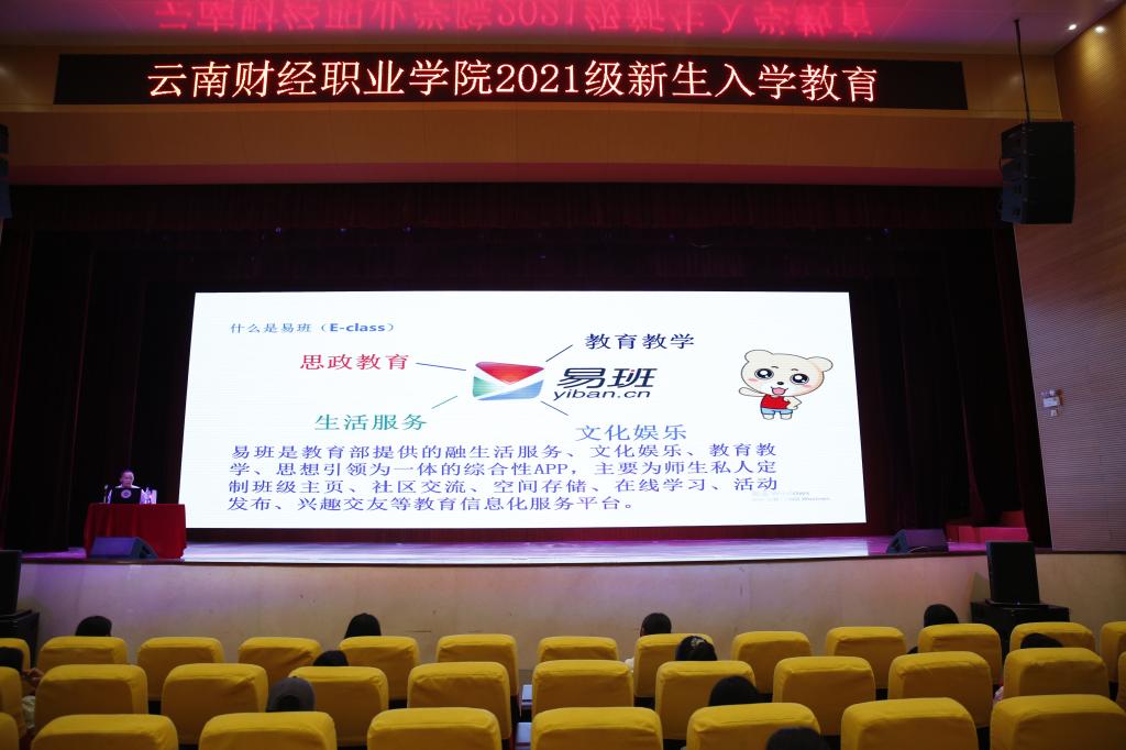 15:40—16:10,学工部何帅老师开展易班工作宣讲,他介绍了学校易班开展的一些活动包括知识竞赛、新生入学教育考试、劳动技能教育等以及取得的成效,展示了学生注册易班的详细流程。