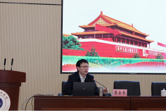 典礼结束后,党委书记张金甫以“中国共产党的性质和宗旨”为题给学员们上了一堂受益匪浅的专题培训课。主要围绕党的性质、党的宗旨、党的指导思想三个方面展开,从不同历史时期深入浅出地对党的性质、党的宗旨和党的指导思想的转变、曲折发展进行了深刻讲解。并着重就青年大学生怎样理解和把握党的性质、党的宗旨和指导思想,如何结合自身加以学思悟践,中国共产党为何伟大等问题向全体学员作了全面阐释,并就今后结合党的二十大精神的学习贯彻提出要求。