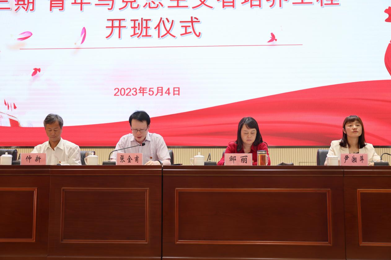为深入学习宣传贯彻习近平新时代中国特色社会主义思想,领悟并践行党的二十大精神,进一步加强我校学生骨干的理论基础和实践能力,着力培育一批信仰坚定、能力突出、素质优良、作风过硬的青年政治骨干。2023年5月4日下午,我校在铭德楼报告厅举行了第三期“青年马克思主义者培养工程”开班仪式。学校领导、“青马工程”工作领导小组成员、各班级团支部书记以及第三期“青马工程”培训班全体学员参加,仪式由校团委书记王俊奇主持。
