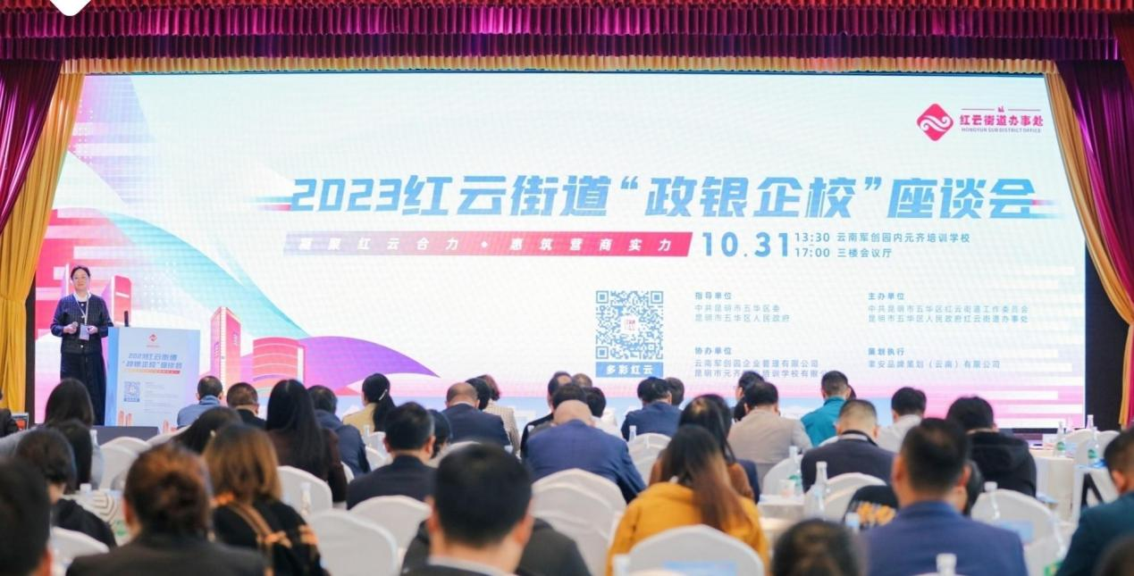 为深入学习贯彻习近平新时代中国特色社会主义思想和党的二十大精神,充分发挥校社资源共享、党建共联作用,10月31日,学校受邀参加五华区红云街道办事处举办的以“凝聚红云合力·惠筑营商实力”为主题的“政银企校”座谈会,辖内200多家知名企业、银行、院校及各行业代表齐聚红云,共商合作,共谋发展,开启了“政、银、企、校”四方联动的红云新篇章。学校党委委员、副校长沈豫琼,副校长严黄一仪出席此次座谈会。