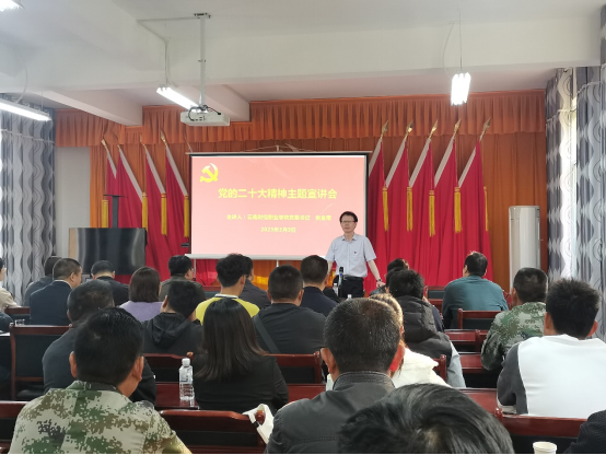 3月9日上午,张金甫在班幸社区作党的二十大精神主题宣讲,他强调,中华民族伟大复兴已经进入了不可逆转的历史进程,要坚持走好中国式现代化之路,坚持党的领导,发扬斗争精神,团结奋斗,坚定不移感党恩、听党话、跟党走。