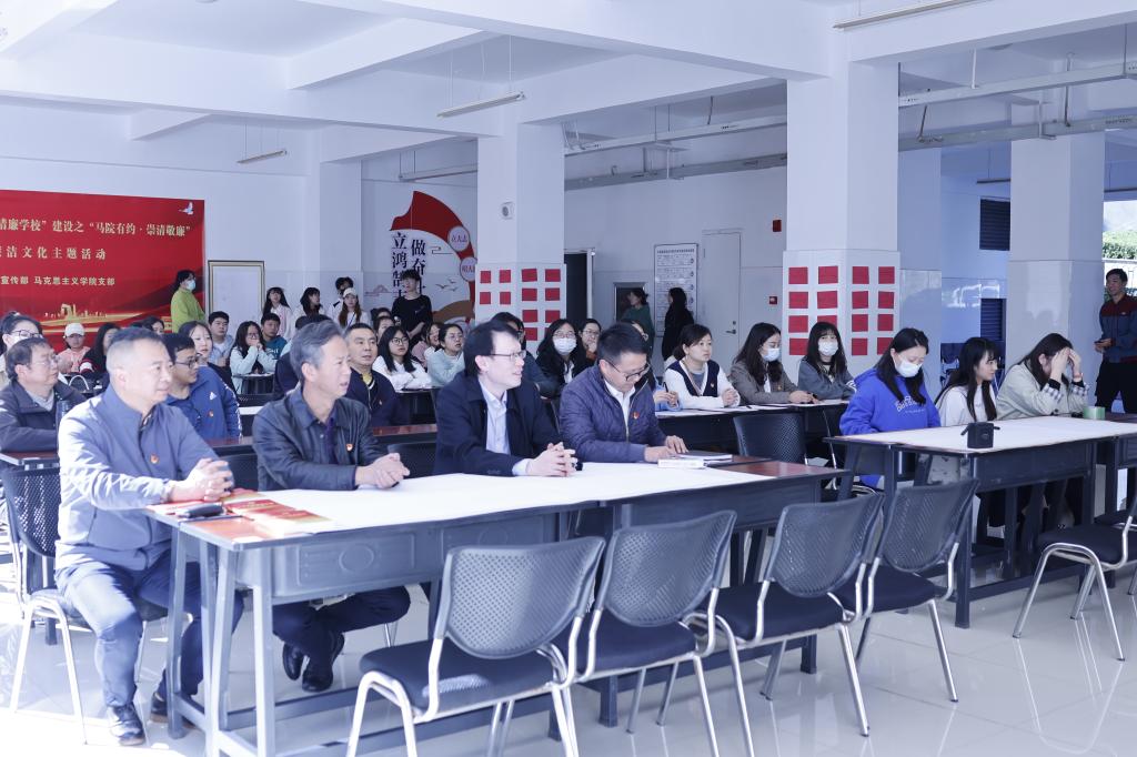 为推进清廉教育与育人工作有机融合,2022年11月10日下午,学校在铭德楼大厅举办了云顶yd222线路检测“清廉学校”建设之“马院有约∙崇清敬廉”廉洁文化主题活动。学校党委书记张金甫、党委副书记仲新、纪委书记马加巍出席活动。