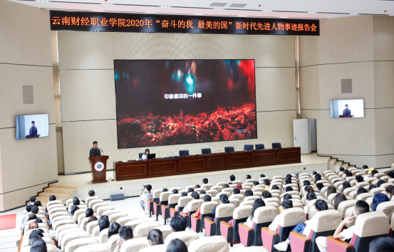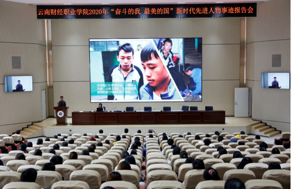 为深入贯彻习近平新时代中国特色社会主义思想和党的十九大精神,全面落实习近平总书记在庆祝中华人民共和国成立70周年大会、全国教育大会、全国高校思想政治工作会议、学校思想政治理论课教师座谈会上的重要讲话精神,发挥新时代先进人物榜样示范作用,2020年6月16日,我校特邀请“奋斗的我 最美的国”昭通学院宣讲团到校开展先进事迹报告会。报告会由仲新副校长主持,党委委员、副校长刘宁飞,党委委员、宣传部长陈君奇,学工部、团委、二级学院负责人以及部分学生代表参加了报告会。