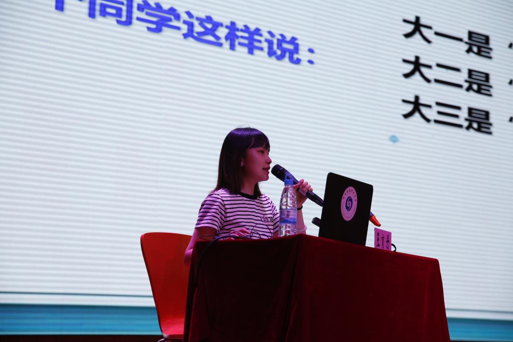 下午14:3015:30,学校心理健康教育咨询中心王育丹老师就“新生适应与心理健康”做了宣讲,她列举了大学新生常见的一些适应问题及心理问题,提供了一些快速适应大学生活、有效缓解心理情绪的小技巧。