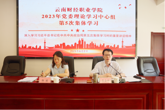 2023年6月2日,学校紧紧锚定开展学习贯彻习近平新时代中国特色社会主义思想主题教育的目标任务,举办党委理论学习中心组第5次集体学习,本次学习主题为深入学习习近平总书记关于教育的重要论述,扎实推动学校高质量发展。党委书记张金甫主持学习并作专题领学,并传达今天上午召开的云南省教育发展大会精神,重点传达了云南省委书记王宁的讲话精神和省长王予波的要求。