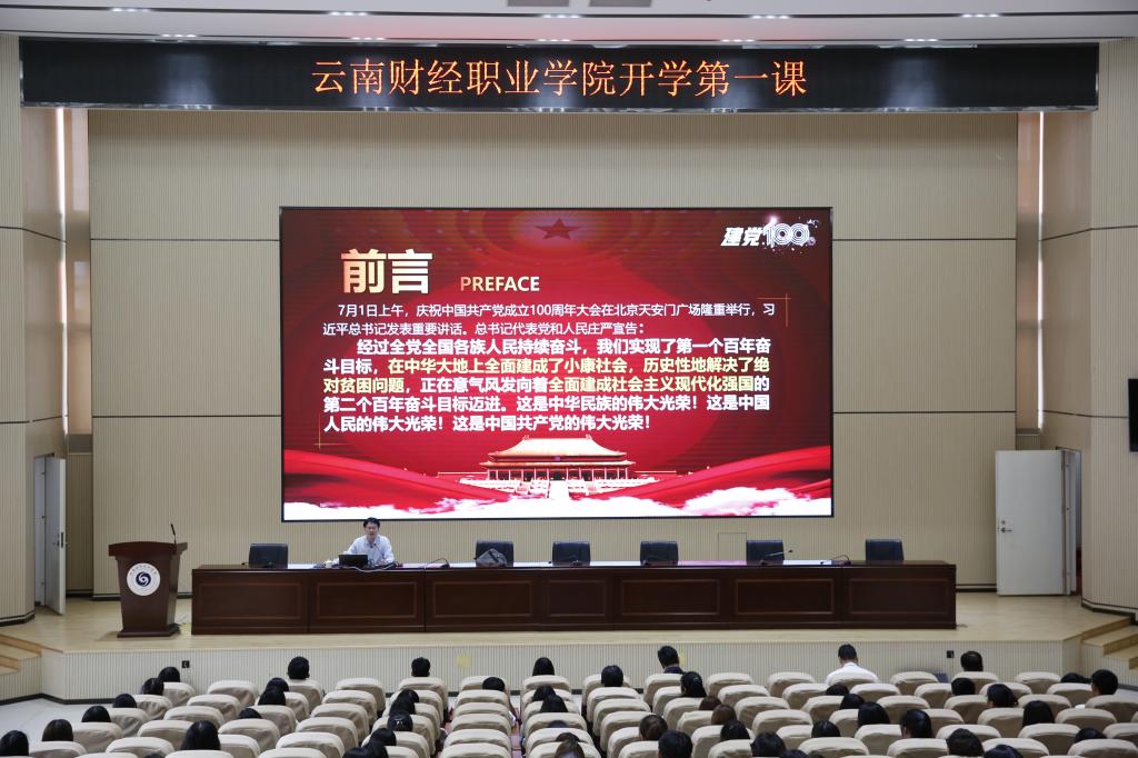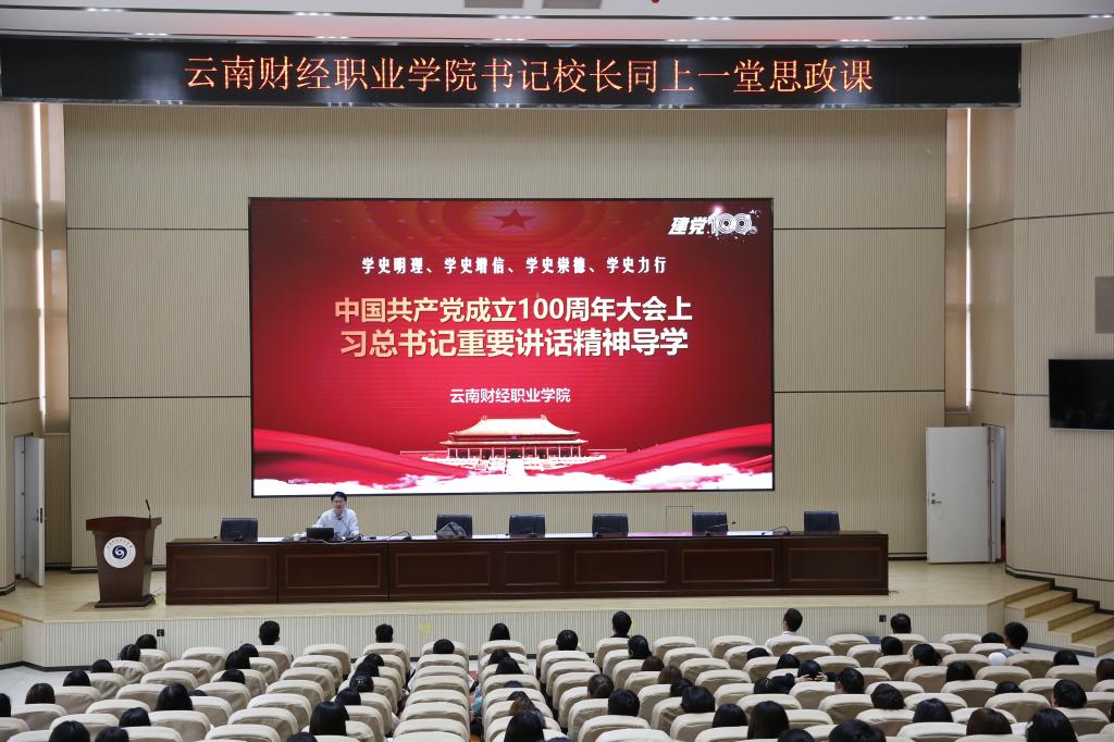 为深入贯彻落实习近平总书记关于办好思政课的重要论述,加强学生的思想政治教育,落实立德树人的根本任务,深入学习领悟习近平总书记“七一”重要讲话精神,云顶yd222线路检测于9月7日下午在报告厅开展书记校长同上一堂思政课——“习近平总书记在庆祝中国共产党成立100周年大会上的重要讲话精神”,主讲人为云顶yd222线路检测党委书记张金甫同志。