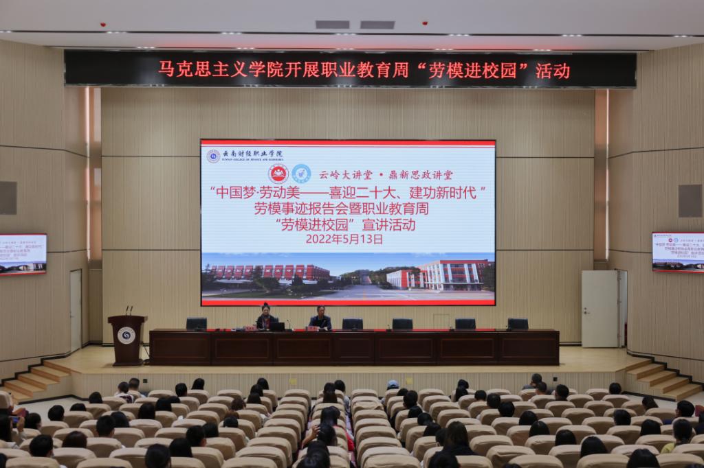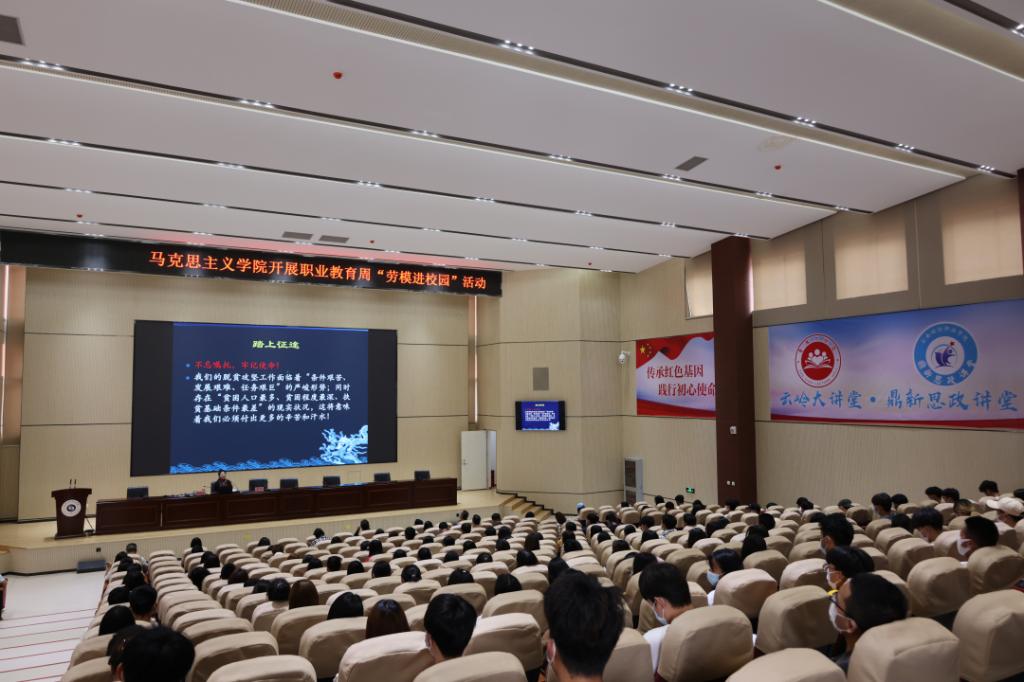 学校举办“中国梦·劳动美——喜迎二十大、建功新时代”“共话百年奋斗,争做时代新人”“读懂中国”系列活动暨职业教育周“劳模进校园”宣讲活动