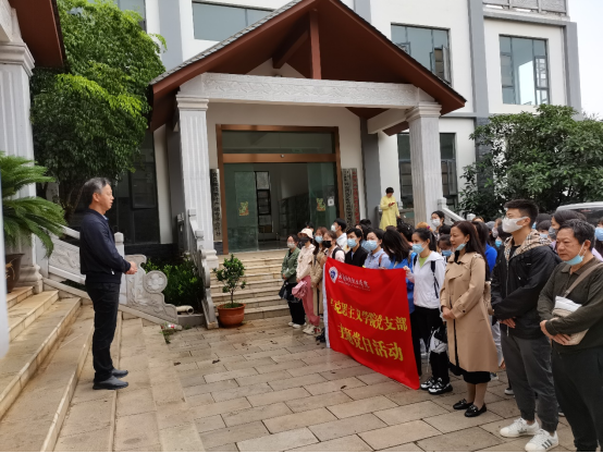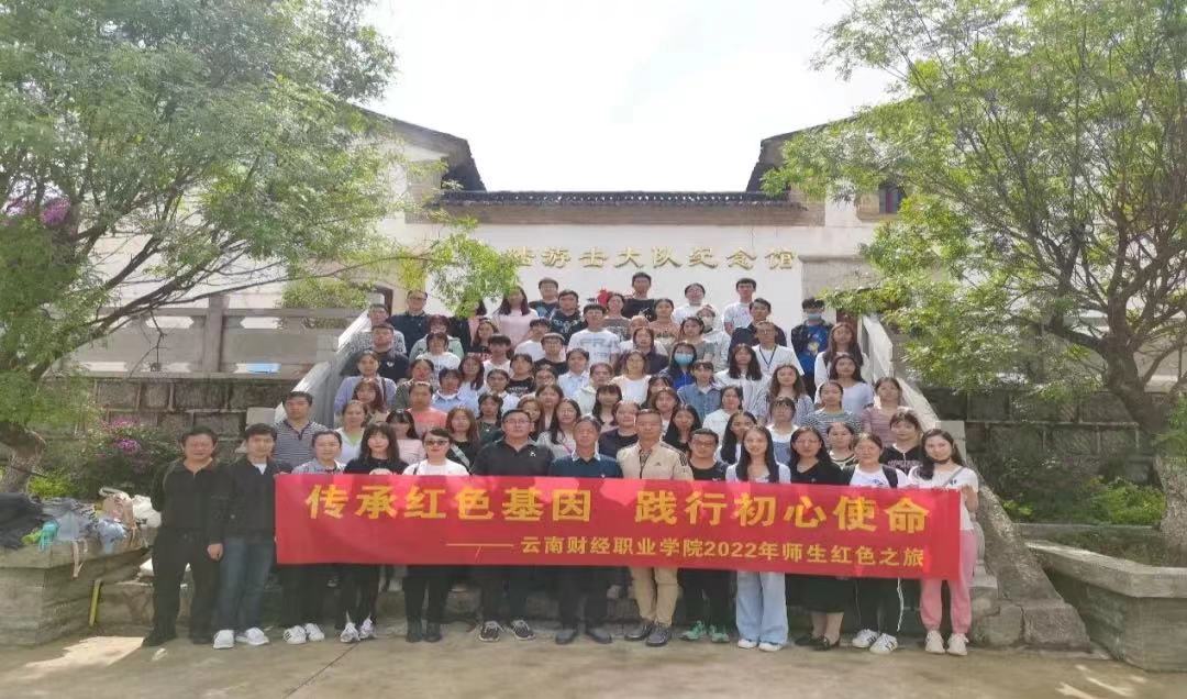 为深入学习习近平新时代中国特色社会主义思想,深入贯彻学习习近平总书记考察中国人民大学重要讲话精神,落实立德树人根本任务,将革命传统和中华民族伟大精神更多地传递给学生。进一步引导学生坚定理想信念、厚植爱国主义情怀、体验美丽乡村、培养劳动新观念,结合学校思想政治理论课建设和宣传思想工作重点任务,提高学校思想政治工作实效,有效推动思政小课堂同社会大课堂有机结合,以优异的成绩迎接党的二十大召开。2022年5月27日,在学校党委书记张金甫、副书记仲新、副校长严黄一仪等领导的带领下,思政课教师、学工队伍、学生干部、青马班学员和学校统战部组织的学校无党派人士、民主党派、留学归国人员联谊会等一行80余人赴宜良县陈家渡社区紫郦茶庄园和宜路陆游击大队纪念馆开展“热爱美好家园 建设美好乡村”和“传承红色基因 践行初心使命”实践教学活动。