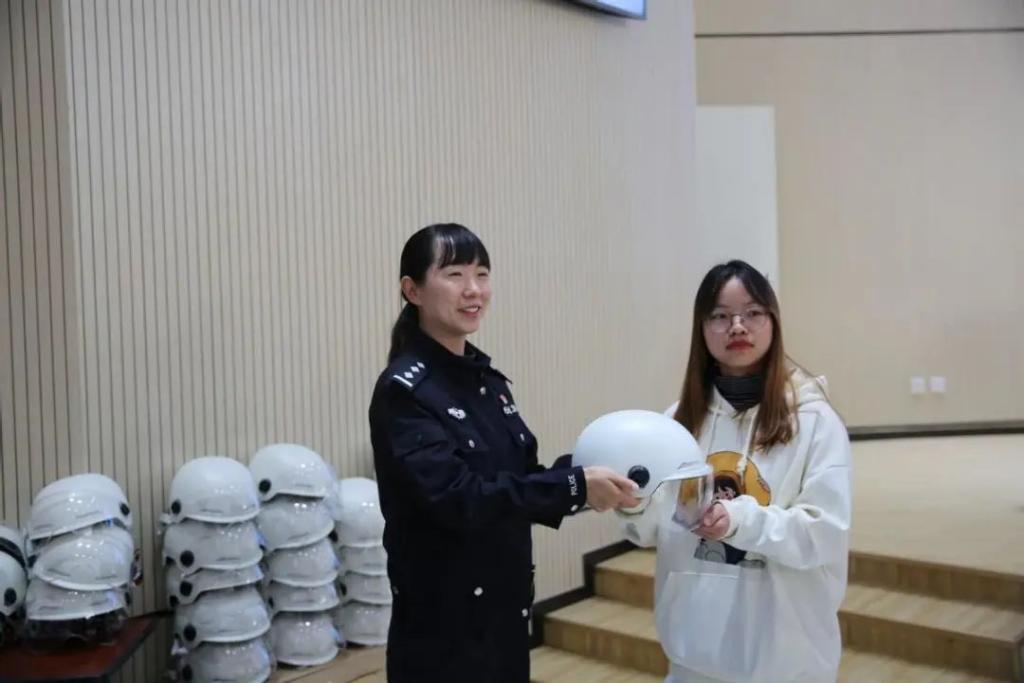 随后,省关工委五老宣讲团副团长何祥旺讲授了《梦想与人生》的大思政课;昆明市公安局交警支队交通安全讲师团赵漓江警官讲授了《遵守交通法,安全你我他》交通安全课。爱心企业雅迪•运利经贸现场向学校捐赠了价值12000元的200顶电动自行车安全头盔并分发给现场师生,并带领在场人员学习正确佩戴使用头盔,活动得到了师生们的广泛好评。