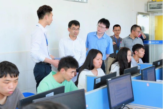 联合调研组成员对学校办学规模、基础设施、学校校企合作基地、实训室进行了实地调研。