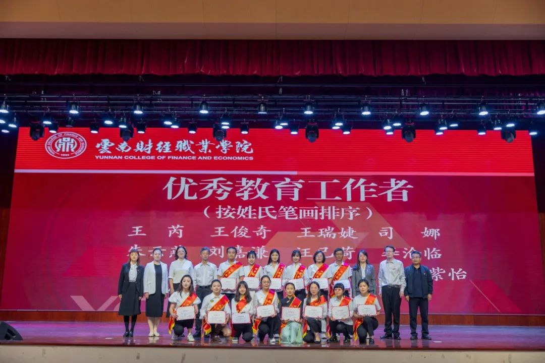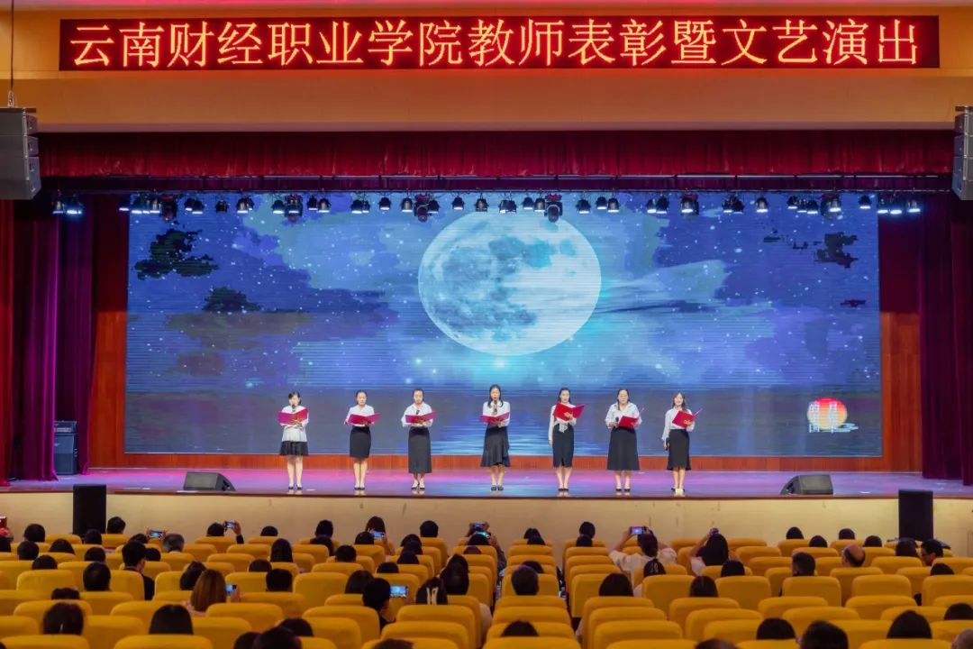 表彰会上,师生欢聚一堂,通过合唱、诗歌朗诵、舞蹈、情景剧等表演形式展示了云财职师生昂扬向上、锐意进取的精神风貌,体现了学校师生团结、温馨、和谐的校园氛围,表达了全校师生对新时代的赞美,对伟大祖国的美好祝福。