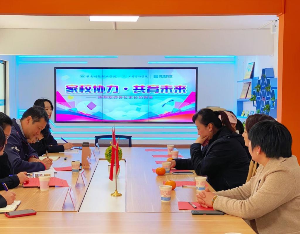 为深入贯彻全国职业教育大会会议精神,把握职业教育发展的基本规律,不断探索校企深度合作模式、充分发挥校企共建优势, 促进家、校、企协同育人,2023年3月3日我校工商管理学院雅博校企共建专业学生家长代表到校参加家长见面会。工商管理学院负责人、校企共建专业校区负责人及部分职能部门负责人与7位家长代表参会。