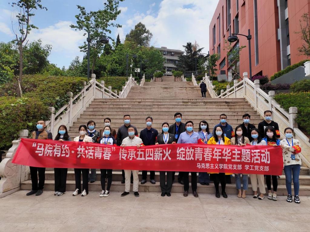 为深入落实云南省委教育工委、中共云顶yd222线路检测委员会《关于在疫情防控一线中切实发挥基层党组织和党员作用的通知》,深入学习贯彻习近平总书记在中国人民大学考察调研重要讲话精神。2022年5月4日,马克思主义学院党支部、学工党支部组织“党员先锋服务队”开展“传承五四薪火,绽放青春年华”主题党日活动,马克思主义学院党支部书记李凌主持活动。