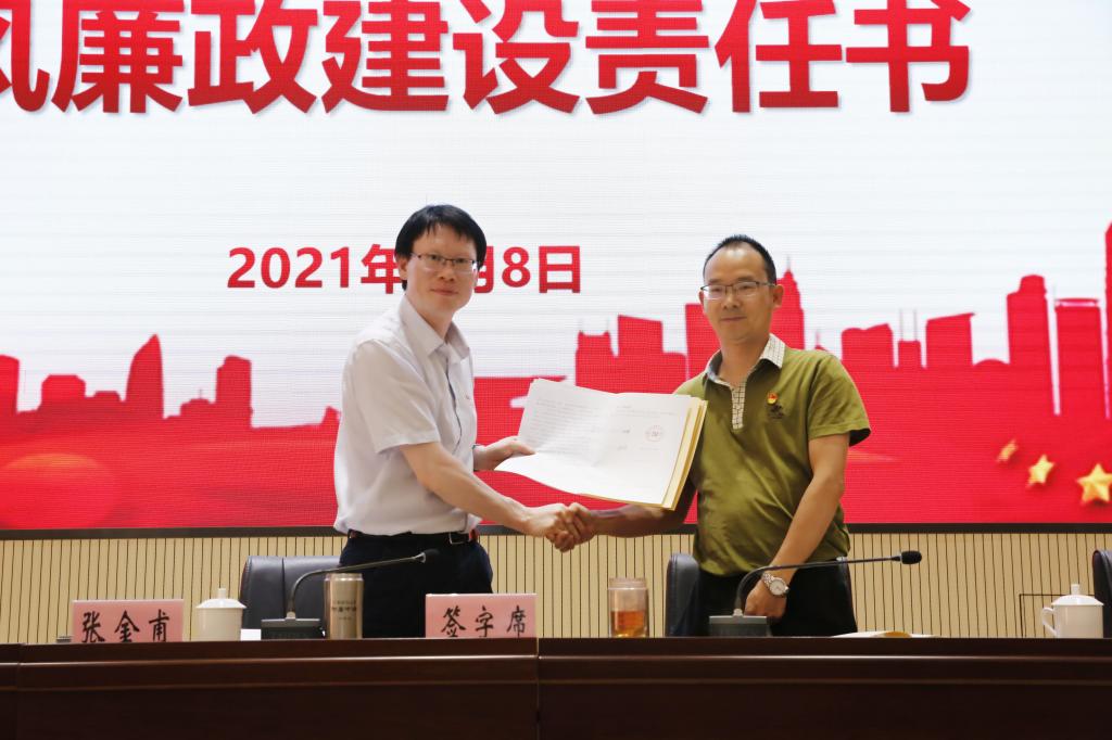 分管领导与分管部门签订2021年党风廉政建设责任书。