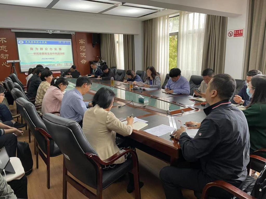 为深入开展“我为群众办实事”实践活动,切实解决师生关心关注的热点难点问题,学校于2022年10月6日在办公楼一会议室召开了“我为群众办实事”—— 听民意促民生改作风提效能座谈会。会议由学校党委副书记、校长邹丽同志主持,校领导、相关职能部门负责人及教职工代表参加了会议。