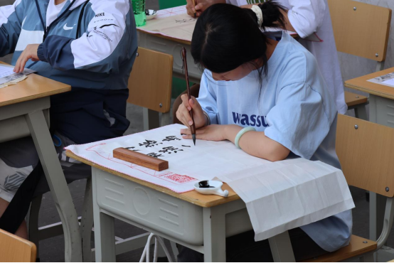 本次书法比赛分毛笔和硬笔两种书写形式,现场的各位同学笔画间清晰有力,笔触尽显毅力。师生同聚一堂,共同以笔会友。