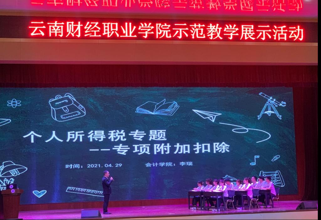 4月29日下午15点30分,首场“示范教学展示”活动由会计学院组织,在我校大礼堂成功举行。活动分为四个环节:教师课堂展示、学生点评、专家点评、校领导总结。学校校长陶昌学,副校长沈豫琼参加了展示活动,全体专兼职教师现场观摩教学。