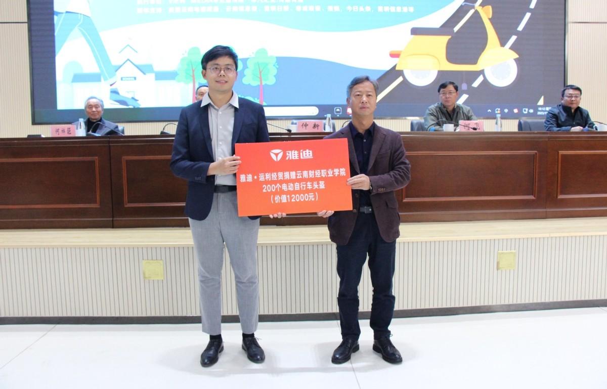 随后,省关工委五老宣讲团副团长何祥旺讲授了《梦想与人生》的大思政课;昆明市公安局交警支队交通安全讲师团赵漓江警官讲授了《遵守交通法,安全你我他》交通安全课。爱心企业雅迪•运利经贸现场向学校捐赠了价值12000元的200顶电动自行车安全头盔并分发给现场师生,并带领在场人员学习正确佩戴使用头盔,活动得到了师生们的广泛好评。
