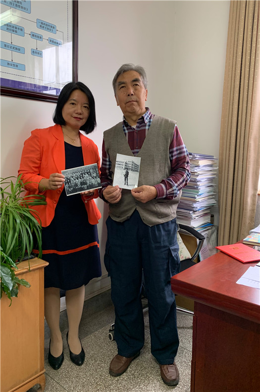 2019年10月14日上午,1967届银行会计专业603班毕业生刘建明返校,向学校捐赠两张老照片。一张照片拍摄于1965年,当时勤奋院教学楼刚刚落成,时隔55年,在同一个位置刘建明校友又拍了一张照片,有心的他还特意带来了当年使用的萨克斯。另一张照片拍摄于1968年,是603班的毕业照。