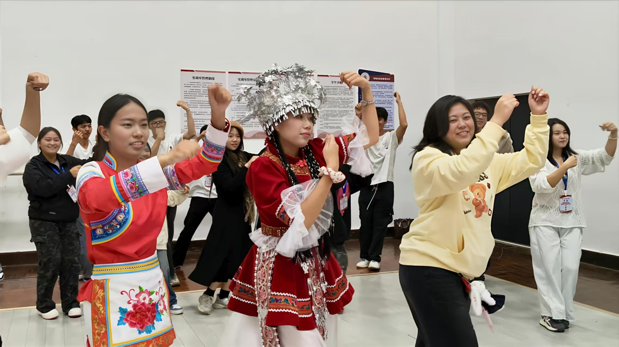 活动以6项特色游戏串联,处处藏着文化对话:“中泰一家亲,歌声传友谊”环节,双语文歌交织两国旋律,中国学生领唱《茉莉花》、泰国留学生分享泰剧插曲,歌声成友谊密码;“你画我猜”用“端午包粽”“泰国水灯节”等双语题目,比划间让两国民俗鲜活呈现;“中泰同心・绳结传情”时,师生教编中国结,泰国留学生则分享本国吉祥绳文化,以指尖互动传递文化温度;“‘羽’你同行”羽毛球赛中,混编队伍协作竞技,赛场欢笑消融隔阂;最后“民族打跳”环节,文艺部同学带领围成圈,云南民族舞蹈动作与泰国传统律动相融,肢体律动拉近心距。