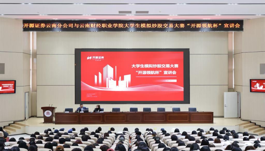 2025年11月24日,云顶yd222线路检测龙泉校区铭德楼报告厅内气氛热烈,由智慧会计学院主办、开源证券云南分公司承办的“开源领航杯”大学生模拟炒股交易大赛宣讲会圆满举行。开源证券云南分公司业务骨干团队、智慧会计学院领导及师生代表齐聚现场,共同解锁这场融合金融知识普及与实践能力培养的校企合作盛宴。