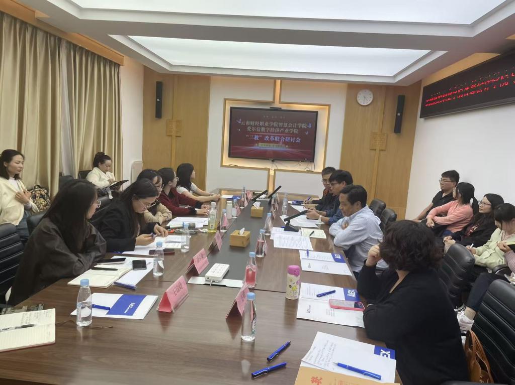 培训结束后,双方以“三教改革”为主题开展了专题座谈会,聚焦教师、教材、教法三大关键要素的协同创新。双方围绕会计专业课程设置、实践教学资源开发、学生实习就业等议题展开深入讨论,旨在推动教学内容与行业标准紧密对接。爱尔信企业项目负责人介绍了校企合作情况、行业最新动态及企业对高素质技术技能人才的需求。最后,双方共同表示校企合作是推动职业教育高质量发展的重要途径,学校与企业将持续提供技术支持和实践资源,共同打造“双师基地”示范样板。