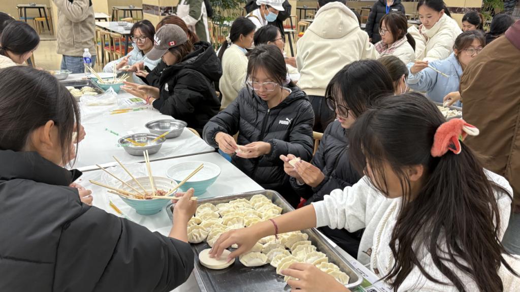 在食堂工作人员指导下,同学们全程参与食材处理、馅料调制及煮制全流程,沉浸式体悟劳动价值与传统饮食文化。热气腾腾的饺子端上桌,汤汁四溢、鲜香萦绕,既是舌尖美味,更是劳动收获的甘甜。