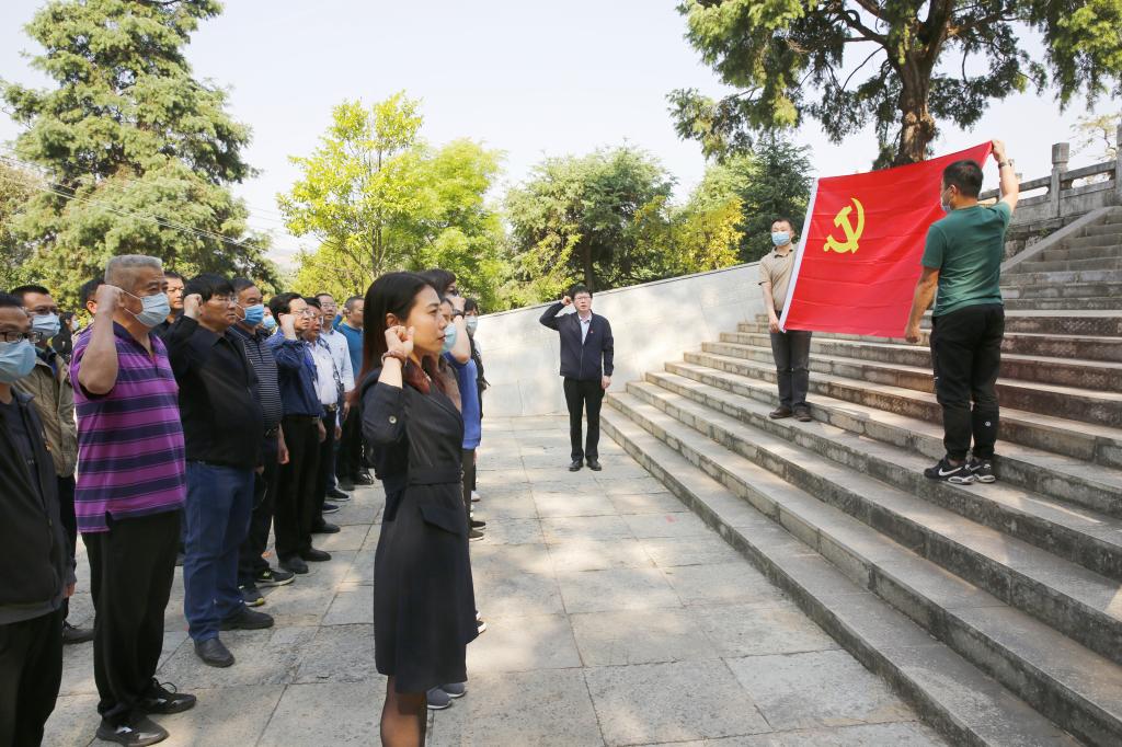 随后由学校党委书记张金甫同志领誓,全体党员面对党旗,举起右手,重温入党誓词。