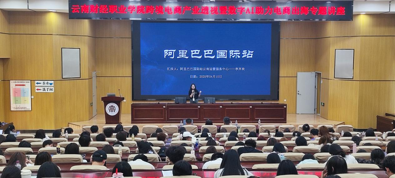 为深化产教融合校企合作,推动跨境电商领域前沿理论与实践结合,促进跨境电商领域知识交流与创新实践,数字商学院于2025年4月10日在图书馆学术报告厅,邀请昆明市跨境电子商务协会秘书长朱文毅老师、阿里巴巴国际站云南运营服务中心负责人李齐欢老师为我校师生开展专题讲座。