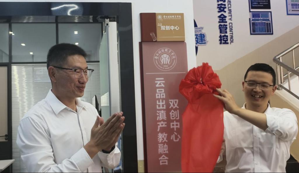 刘珍亿首先从服务国家创新驱动发展战略、培养服务地方经济的高素质人才的角度,阐述了创新创业中心成立的重大意义,向一直以来关心和支持学院专业发展的云南开明古韵科技有限公司表示感谢,随后,刘珍亿与吴平三共同为“云品出滇产教融合双创中心”隆重揭牌。