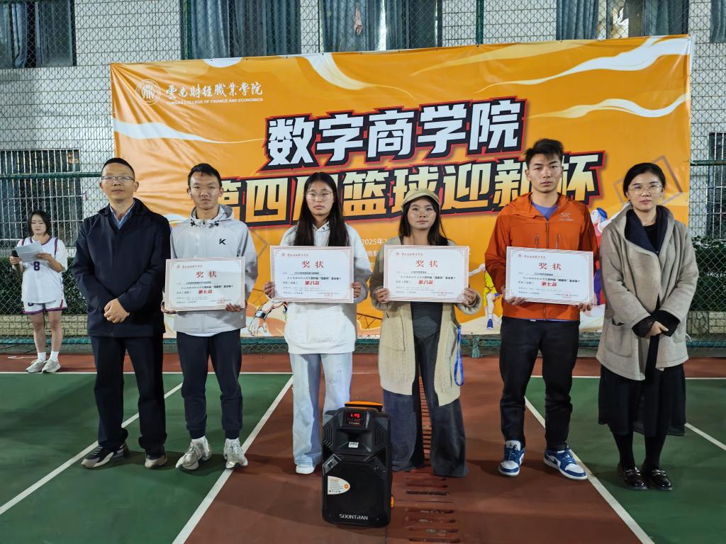 2025年11月12日晚,云顶yd222线路检测数字商学院第四届“迎新杯”篮球赛顺利闭幕。本次赛事历时1个月,经过多日角逐,各班级队伍以球会友、以赛聚力,最终在欢呼与掌声中为这场青春赛事画上圆满句号