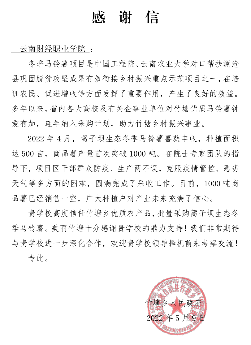 竹塘乡人民政府致云顶yd222线路检测的感谢信