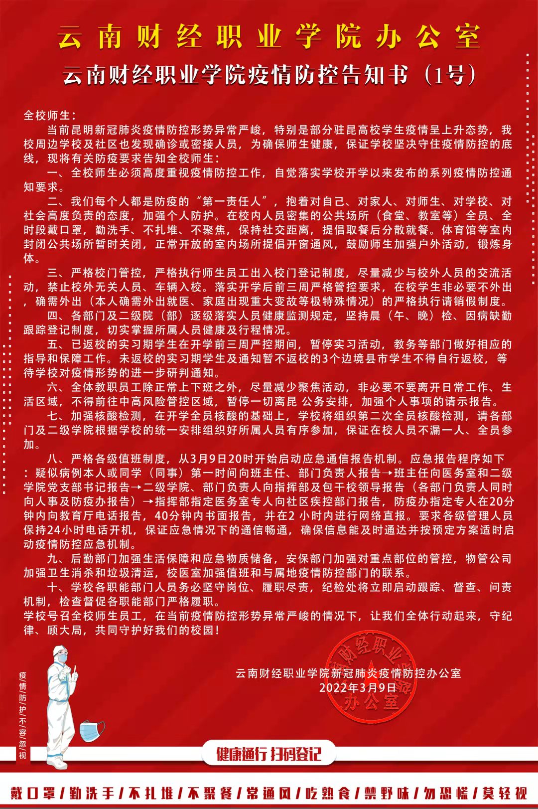 致云顶yd222线路检测全体同学的疫情防控倡议书