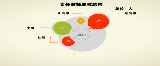 学校教师总数262人,其中,专任教师数151人。具有中级以上122人。师生比18.6:1。