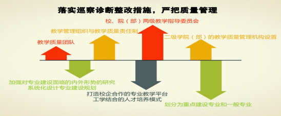 在教学管理制度完善和执行方面,依托内部质量保障体系诊断,建立科学的教学管理动态体系。引入(全面教学质量管理模式进行对教学管理制度执行情况进行全方位管理。