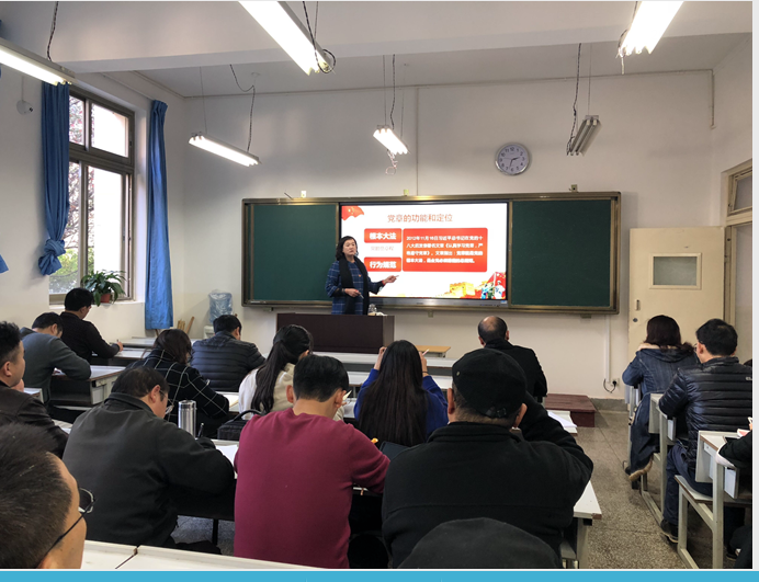 2017年12月15日下午14:30分云顶yd222线路检测教学总支部组织开展了以题为“十九大新党章学习”的党课教育活动。本次会议由教学总支部书记习强同志主持,学院党委委员、副院长沈豫琼同志主讲。教学总支部除上课教师外,全体党员同志均参加了此次党课教育。同志们仔细聆听,认真记录。本次党课内容围绕“十九大新党章”展开,这次修订开启了党的伟大事业的新篇章,激活了推动历史进步的巨大能量。把十九大报告确立的重大理论观点和重大战略思想写入了党章,是党章的再完善,是党的理论武装的再升级,是新形势下党治国理政的必然要求。我们务必切实认真学习新修订后的党章,坚持党的领导,发挥党组织的战斗堡垒作用和党员的先锋模范作用。本次党课沈豫琼同志主要围绕以下三方面宣讲: