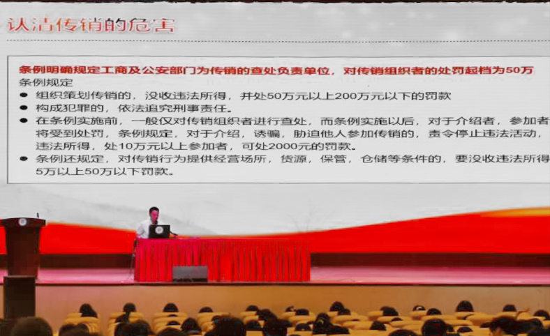 讲座中,邮政储蓄银行相关负责人结合主题从传销的特征和手段、校园网贷案例、校园贷的相关特点、防骗识别措施和如何安全地使用金融产品等几个方面进行了讲解;深入介绍了传销、电信诈骗和校园贷的危害性以及如何避免三种情形的有效措施,重点讲解了如果无法识别诈骗、辨别电信诈骗和校园贷时要充分利用官方渠道进行咨询。