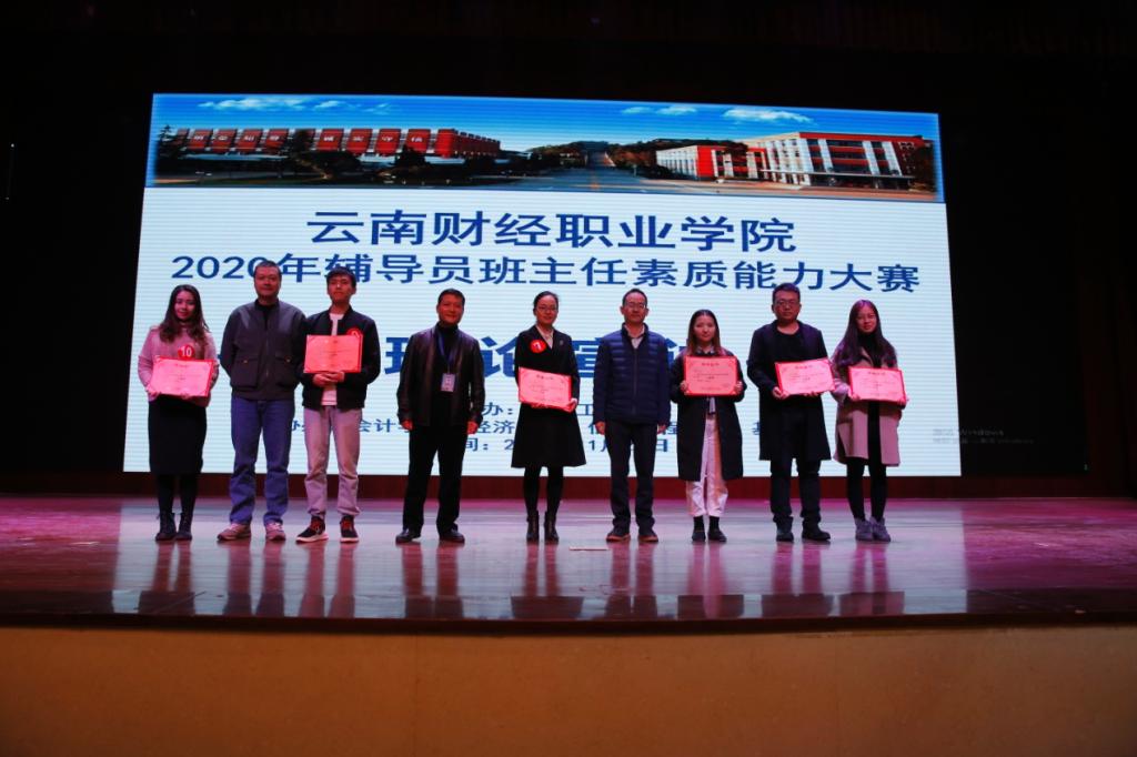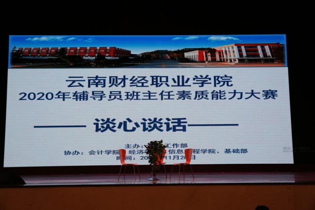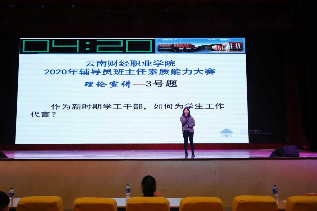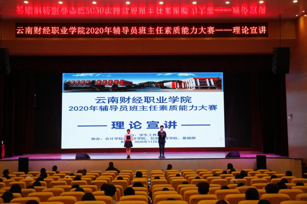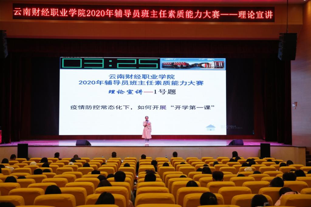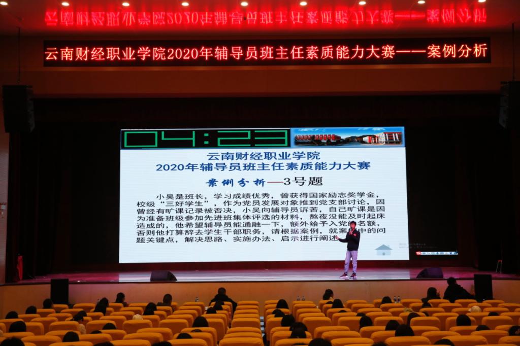 由我校学生工作部主办的学校2020年辅导员班主任素质能力大赛在学校大礼堂举行,大赛从11月23日正式开始,包括笔试、案例分析、谈心谈话、理论宣讲四个环节。学校领导、各二级学院党委书记,全体辅导员及班主任参加了本次比赛。云南机电职业技术学院、云南林业职业技术学院、云南旅游职业学院、云顶yd222线路检测学工部负责人担任本次大赛评委。