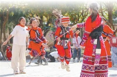 高校师生也行动起来。迪庆藏族自治州德钦中学的操场上,前来支教的大理大学学生唐晓青正带着同学们练习花样跳绳。自云南省实施体育美育浸润行动计划以来,大理大学的支教志愿者们为迪庆州德钦县、维西傈僳族自治县的孩子们带来了不一样的体育课程。