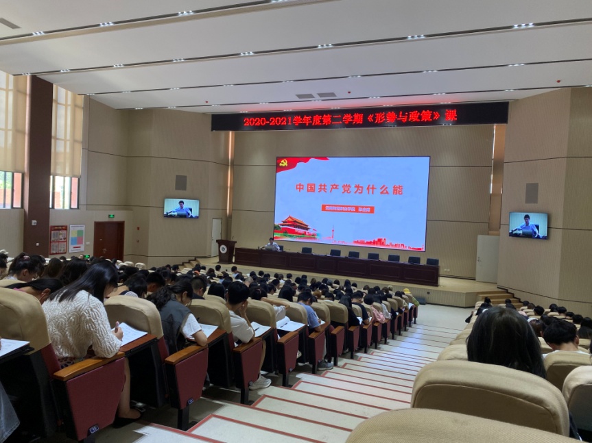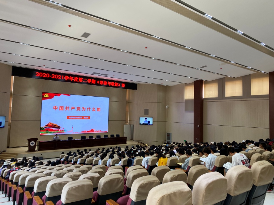 为进一步加强大学生党史、新中国史、改革开放史、社会主义发展史四史学习教育,充分发挥思想政治理论课主渠道作用。202156日下午,学校党委书记张金甫为我校2019级近400名学生作了题为中国共产党为什么能的形势与政策课专题报告。
