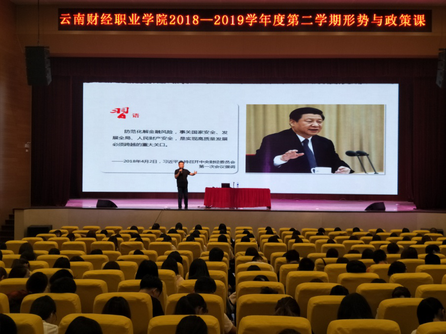 2019年5月28日晚,学院教务处处长李中京在大礼堂为我院2017级、2018级大学生作了题为“增强忧患意识 防范风险挑战”的形势与政策课专题讲座。