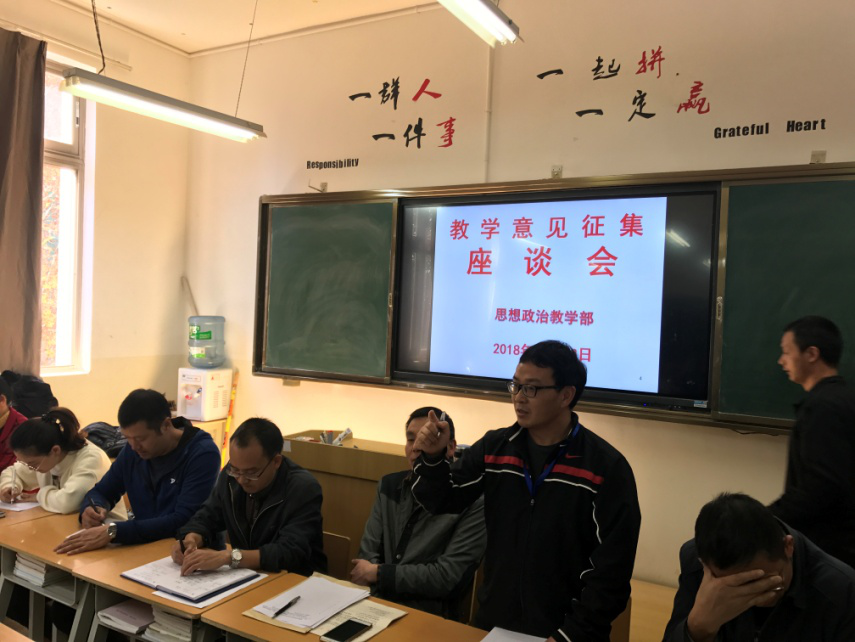 针对思政部《思想道德修养与法律基础》和《形势与政策》课的教学情况,2017级、2018级各班学生委员积极发言,对各任课教师的教学提出了中肯的意见和建议。针对《思想道德修养与法律基础》这门课,大部分学生对教师的教学给予了充分肯定,但也有学生反映有些思政课老师教学中还存在问题需改进。集中反映在:教师认真备课认真,准备充分,PPT课件制作精美,内容丰富,讲解全面,但有部分学生反映思政课理论性强、较枯燥;教师与学生互动较少,课堂气氛不够活跃、学习积极性不高;教师教学方法单一,缺乏灵活性和教学创新;照PPT念、缺少深入细致讲解等。