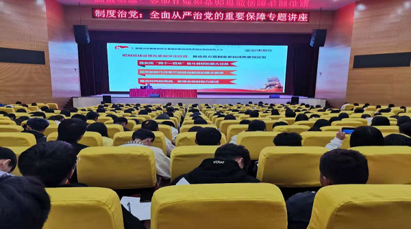 2020年11月19日,学校党委书记李思泽同志在学校大礼堂为我校大学生讲题为《制度治党:全面从严治党的重要保障》形势与政策专题报告。学校2018级、2019级2020级全体学生参加学习。